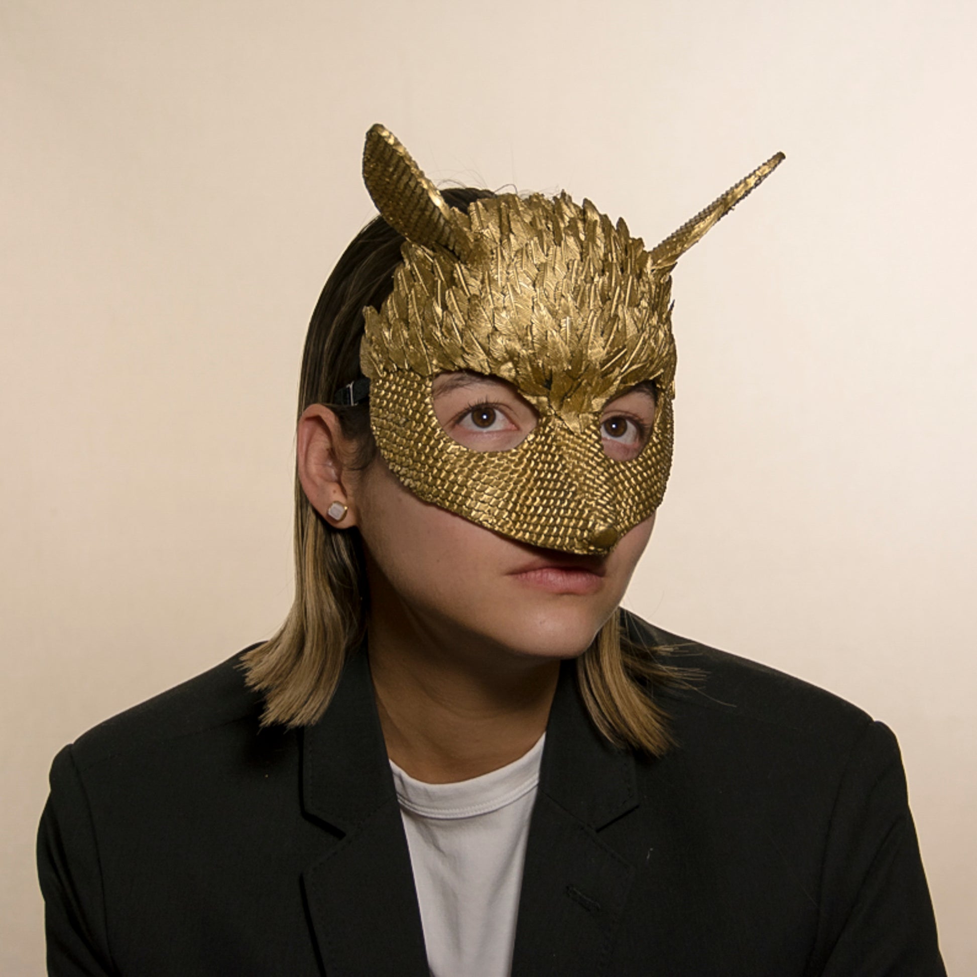 Materials: Built on a silicone base, silicone feathers and textures, hand painted.